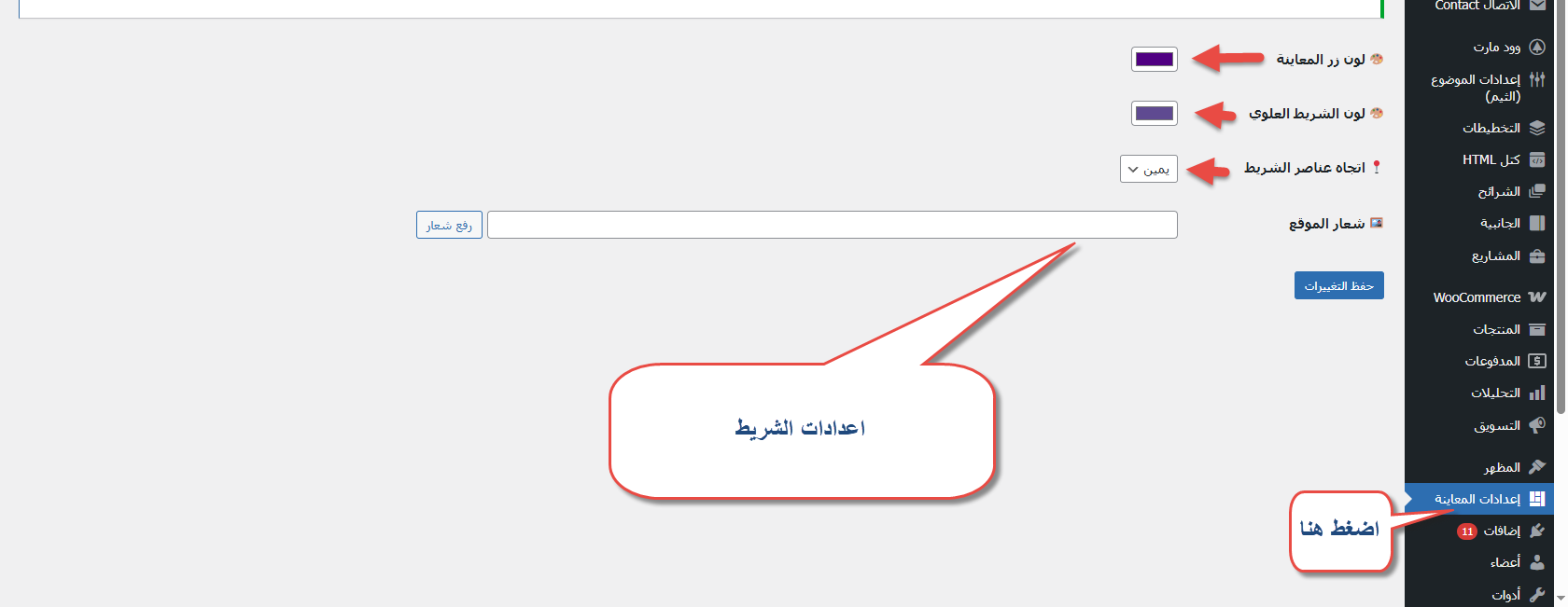 التحكم بلون زر المعاينة.