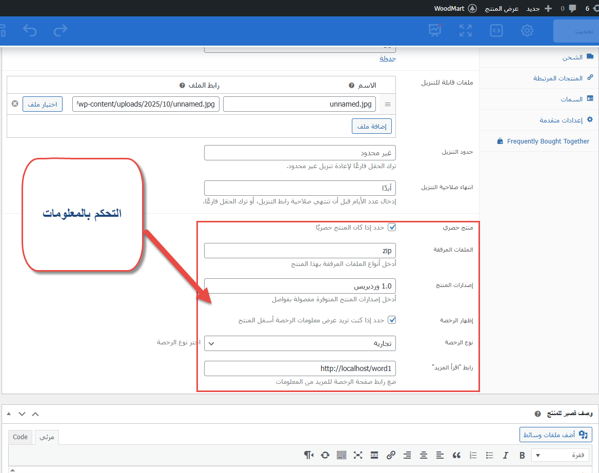 اضافة وردبريس عرض معلومات المنتج المتقدمة