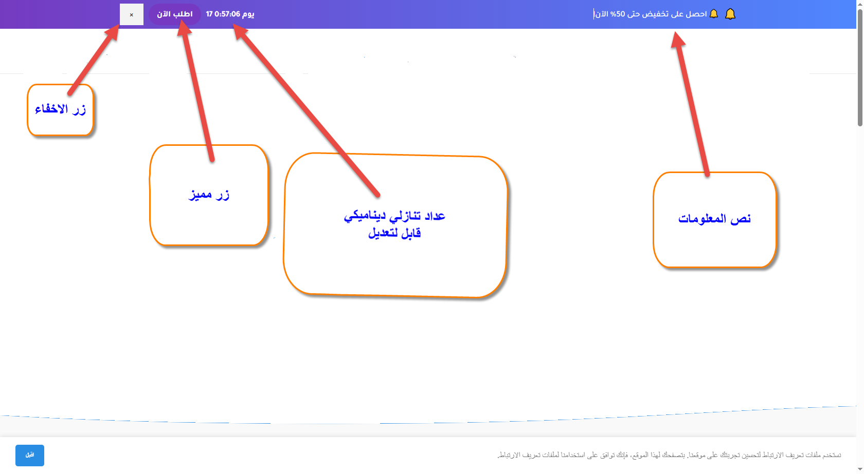 عداد تنازلي ديناميكي: حدد تاريخ انتهاء العروض ليظهر تلقائيًا، مع رسالة عند انتهاء العداد.