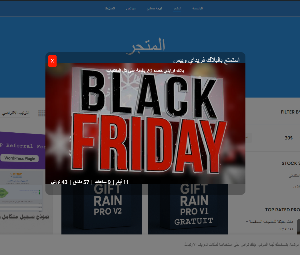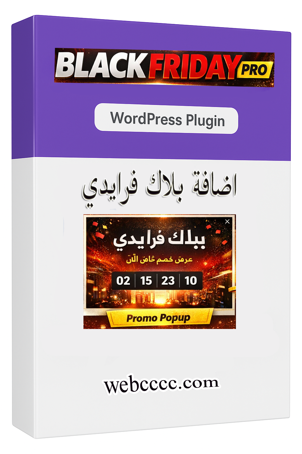 Black Friday Pro هي إضافة ووردبريس احترافية تُمكّنك من إنشاء حملات خصم قوية ومرنة لمتجرك على WooCommerce، مع عرض بصري جذاب يشمل بادج الخصم و نافذة منبثقة (Popup) مع عدٍّ تنازلي تلقائي، كل ذلك بدون تعقيد.